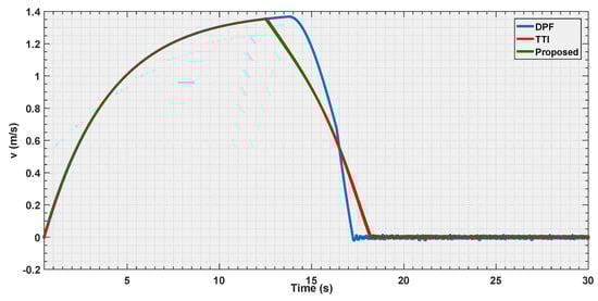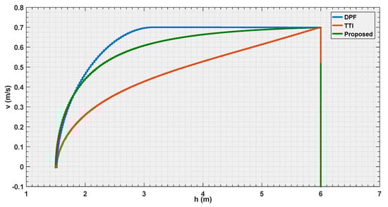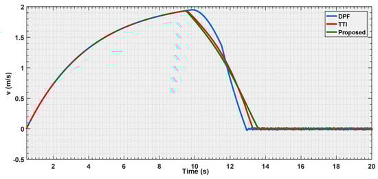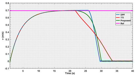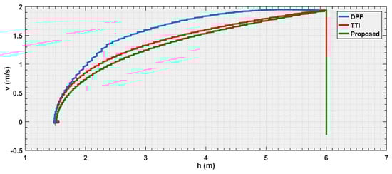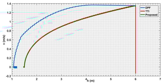 According to the Figure 18, Figure 19 and Figure 20, it is shown that as the velocity is increased the three tested strategies show similar behaviors, with the three curves almost converging towards the same trajectory. This also shows how the choice of the law (Equation (20)) for the parametric curve is a good pick to describe the increased danger when approaching an obstacle.