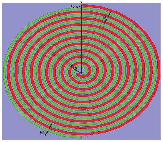 where g is the inter-spacing between adjacent lines, and w is the strip width. The is the inner radius of the spiral antenna.