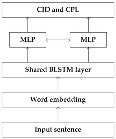 The input sentence of the network is the decoding result of ASR model, i.e., word sequence with Chinese characters and English words. Word embedding is a feature learning technique, in which words or phrases of the vocabulary are mapped to a word vector. The word embedding can learn abstract meanings of words and reduce the input dimension from the vocabulary size to a lower dimension. Based on ATC regulations, we design a shared BLSTM layer to extract the context utterance of the input sentence, in which the CID and CPL can enhance the performance with each other. Finally, two independent MLPs are applied to finish the two tasks. Since the output of the BLSTM layer is a sequential data, we forward the output (CI and CP) of first i words to the next time instant to mine temporal dependencies of the ATC speech, where and L is the length of the BLSTM output.