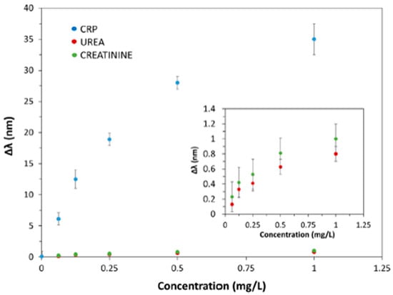 - Zubiate, P.; Zamarreño, C.R.; Sánchez, P.; Matias, I.R.; Arregui, F.J. High Sensitive and Selective C-Reactive Protein Detection by Means of Lossy Mode Resonance Based Optical Fiber Devices. Biosens. Bioelectron. 2017, 93, 176–181. [Google Scholar] [CrossRef] [PubMed]