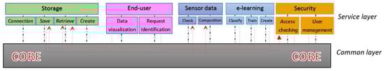 - Sensor data services: These are focused on checking the information retrieved from sensor networks (check service). This service also adds new metadata to extend the knowledge of each measurement. For example, when sensor data are received, the service also adds timestamp information and classification values, if they are required.