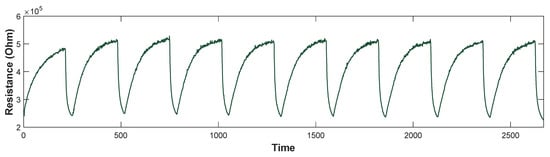 In the preprocessing stage, which is performed by the Python program that runs on the gateway, the feature extraction is made. To this end, the RR algorithm is used, which is the ratio between the resistance value of the baseline and the resistance value during exposure to the target compound, as explained above. In this way, it is possible to extract the main information and considerably reduce the size of the data.