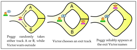 ZKPs are a cryptographic technique that enables a prover (P) to demonstrate to a verifier (V) that P possesses k bits of information (k arbitrary), without exposing even a single bit of this information to V. As shown in Figure 2, the initial development of ZKP relies on an interactive challenge/response protocol that could be used to demonstrate the knowledge of a single bit of information [50,51,52]. The ZKP technique has since been extended to completely automated (non-interactive) protocols that can handle an arbitrary bit vector of length k that is known only to the prover P. ZKPs are probabilistic protocols. In a typical implementation of a single ZKP, iteration can be used to provide 50% certainty that P knows 1 bit of information [53]. For N iterations over a k-bit vector, the probability provided by the proof of knowledge scales as (1 – 2−N)k. Traditionally, the verifier V is referred to as Victor, and the prover P is referred to as Peggy. In the LBS case, the verifier is the user (receiver), and the prover is the LBS provider (sender).