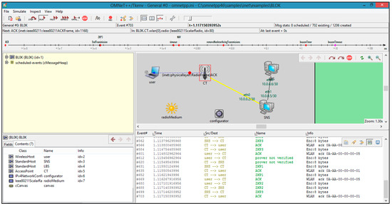 Figure 10 shows the information necessary for the BL0K model, which is the real world scenario of the proposed model simulated in the OMNET++ environment. In this simulation, C++ code from eclipse has been used in the OMNET++ environment, and the network scenario consists of USER, CT, SNS, and LBS.