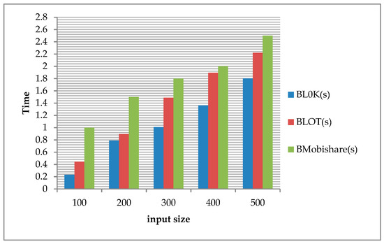 Figure 11 shows that the computation performance of BL0K is the best because it is fastest in the execution of one complete query. That occurred because the data flow in BL0K is less than in BLOT and BMobishare.