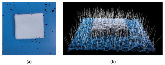The sign of the normals: (a) the point clouds of the towel on a table; (b) the point clouds of the towel and its normals.