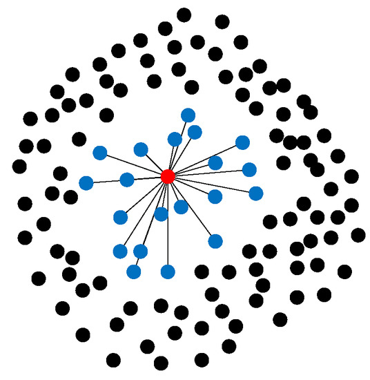 The neighbor points: the red point is the point , the blue points are the neighbor points.