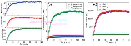 - Pan, B.; Shi, W.; Lubineau, G. Effect of camera temperature variations on stereo-digital image correlation measurements. Appl. Opt. 2015, 54, 10089–10095. [Google Scholar] [CrossRef]