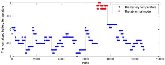 As shown in Figure 2, the series is the real solar temperature telemetry from the EPS of a spacecraft that is labeled by the GPR model, where some isolated points are labeled as anomalies. Nevertheless, in the real application, the significant abnormal patterns always show the persistence property over a period. Namely, the isolated points beyond the PI within the telemetry series are normal from the view of fault analysis. These false alarms are mainly caused by the inaccurate modeling for the irregular mode switch. Although these false positives are relatively smaller compared with the large scale of the testing points, the ground operation staff have to check the telemetry status to exclude these false alarms. Obviously, these false positives bring a lot of extra work that largely affects the applicability of the monitoring method.