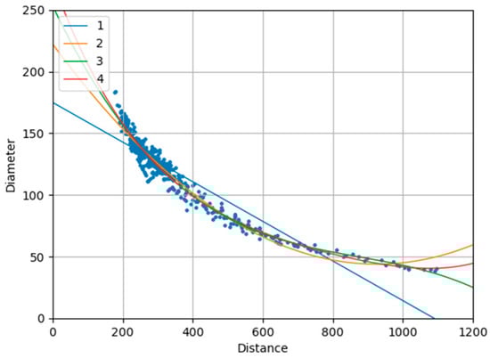 Table 4 describes the head diameter fitting results with different degree of polynomial. We use Root Mean Square Error (RMSE), R-Square (), R-Square based on RMSE, and classification score to evaluate the performance of fitting. The definition of the indicators is formulated as follows. For the ground truth vector and prediction vector :