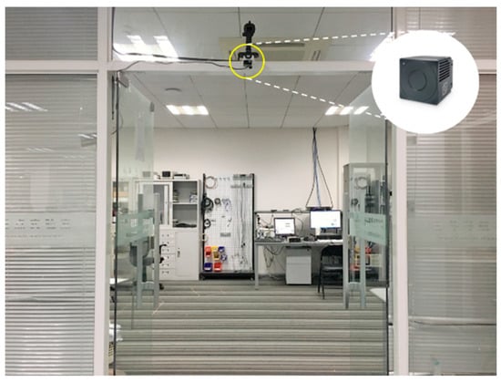 The experimental environment and installation of TOF camera in the laboratory scene.