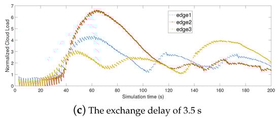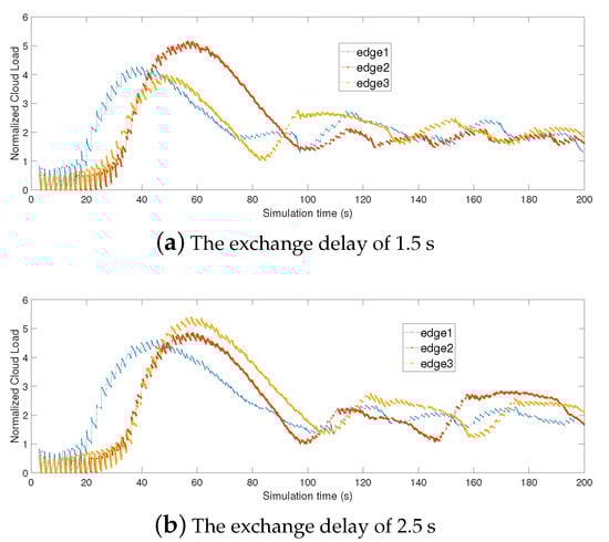 To evaluate the impact of information exchange delay, we utilize the load of edge cloud to show the convergence speed of our strategy. Figure 10 shows the normalized load of different edge clouds under different information exchange delay. It shows that the convergence speed of our strategy is related to the information exchange delays, at a lower convergent speed when the delay increases.