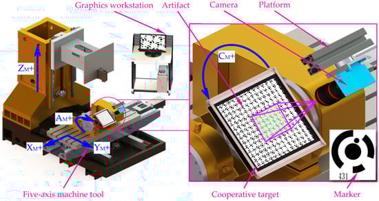 - Liu, W.; Li, X.; Jia, Z.; Li, H.; Ma, X.; Yan, H.; Ma, J. Binocular-vision-based error detection system and identification method for PIGEs of rotary axis in five-axis machine tool. Precis. Eng. 2018, 51, 208–222. [Google Scholar] [CrossRef]