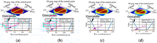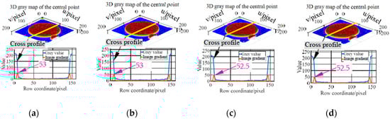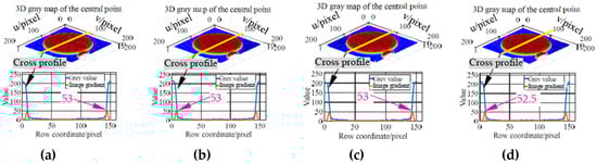 where denotes the number of pixels to be processed, represents the grey value at pixel position . According to whether the pixel position participates in the calculation, is set to 0 or 1. Then, do error propagation to Equation (12) to determine theoretical accuracy: