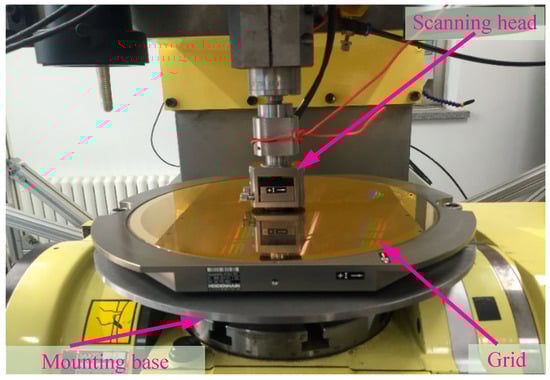 Another contact-free optical equipment, the cross-grid encoder, was proposed by Heidenhain Ltd. It enables the contouring performance detection of a two-dimensional (2D) free-form trajectory using diffraction-based technology, and results reported by this device conform to the ISO 230-4 [] and ISO 10791-6 [] norms. More recently, research works on this equipment are mainly focused on the detection of both quasi-static [] and dynamic errors []. This diagnostic strategy breaks the measurable trajectory limitations of the abovementioned telescoping ballbar test, however, in practical implementation, a precise scanning gap of 0.5 ± 0.05 mm and fixed angle of 24° are required to obtain finer measuring signals, resulting in its inability to evaluate the contouring accuracy of a rotary axis. Besides, extreme care must be taken during measurement to avoid damaging the grating system.
