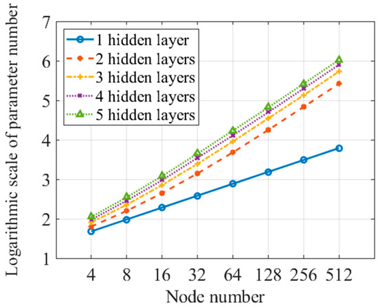 Figure 12 gives the parameter number for force classification ANN, which is shown on a logarithmic scale, since it grows exponentially. The parameter number for the location classification ANN is a little larger than that of the force level classification ANN, because the output layer node number increases from three–nine. The classification time cost increases as the parameter number increases. Thus, the classification cost also grows exponentially. The location classification time measured for one touch is 0.98 ms for an ANN with 5 hidden layers and 512 nodes for each layer.