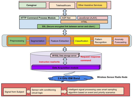 The world proportion of the aging population is increasing, and healthcare cost is economically affecting both the general population and governments. When an elderly or disabled individual live with their caretakers, the change in their well-being can be easily detected by caretaker through the change in ADLs, such as behavioral changes related to sleeping duration and use of the toilet [16]. Elderly or disabled persons would even be fine to live with caretakers, but the overloaded of aging population makes it next to impossible to assign caretakers to everyone. To address the elderly’s demand, smart home based AAL systems are the best solution. In 1995, Celler et al. exhibited the first tele-monitoring framework that could decide remotely the functional wellbeing status of older individuals, by consistently and inactively observing connections between old individuals and their living condition over a significant timespan. To achieve this, ADL observation utilized magnetic switches inside the indoor environment that record movement between rooms, infrared sensors on the dividers that distinguish movement in explicit territories of the room, and sound sensors that decide the kind of action. With this improvement, it ended up being conceivable to react prior to behavioral changes, and therefore changes in functional wellbeing status; observed actions would be contrasted with the “typical” behavioral pattern of the individual, and behavioral changes would be noted. The utilization of healthcare monitoring may, thus, provide near real-time analysis that can capture potential emergencies [17].