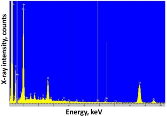 Energy-dispersive X-ray spectroscopy of the carbon rod surface.