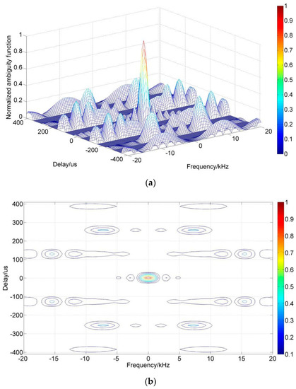 The ambiguity function of each code sequence is the sum of its orders’, and can be formulated as Equation (7):