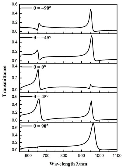 Transmission spectra at different orientation angles.