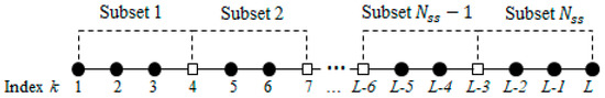 - Divide into subsets as , for , where K is the number of data used in GM(1,1) model. Figure 2 indicates how is divided into subsets with K = 4 where the square refers to the overlapped sample.