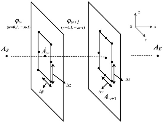 Environmental modeling is the first step in path planning. The 2D grid method is commonly used for planar environment modeling in 2D path planning. When it is extended to 3D path planning, we could adopt a 3D grid method, which divides the three-dimensional space into several horizontal planes perpendicular to the Z-axis and then divides each horizontal plane into grids [37,38].