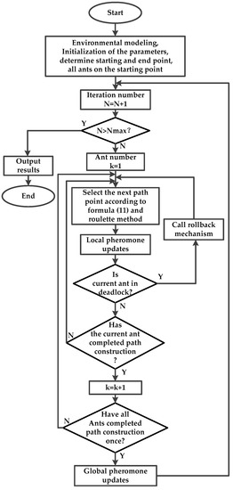 The key difference between the basic ant colony algorithm and the improved ant colony algorithm is the pheromone update, which will be first explained in Section 4.1.