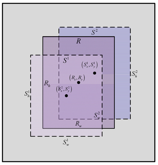 For our ship tracking task, a bounding box regressor is specially trained. Suppose that pairs of samples participate in the training process. Each pair of samples represents a real bounding box of the target and a sampled box tightly around . and respectively indicate the center coordinate and the width/height of the sampled box. Similarly, and respectively represent the center coordinate and the width/height of the ground-truth bounding box of the target. The purpose of training the regressor is to get an ideal mapping function from the predicted bounding box to the ground-truth bounding box. The relationship between the predicted box and the real box is shown in Figure 8: