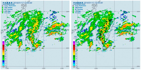 The radar echoes are used to observe the amount, the structure distribution, the intensity, and the movement of cloud cover through the strength of echo signals. A higher echo intensity refers to thicker clouds and more abundant rainfall and a lower echo intensity to thinner clouds and less rainfall. The region which has thicker clouds tends to be the region bearing the most precipitation. Radar echoes are mainly aimed at detecting water droplets in the air. The detecting process is carried out with a radar antenna, transmitter, receiver, and radome by emitting electromagnetic wave signals across a specific elevation angle range. When the electromagnetic wave meets the water droplets or objects in the air, the reflected signal is generated and then received by the receiver. When the target moves closer to the transmitter, the reflected wave becomes denser; when the target moves away (from the transmitter), the reflected wave becomes sparser. The overall complete radar echo information is obtained through signal processing and analysis. Due to the higher sensitivity of radar echo to water droplet signal detection, it is often used by scholars for future rainfall prediction [5,6]. Based on our investigation, we know that so far there are four radar echo stations in Taiwan, the overall signals of which can fully cross all over Taiwan.