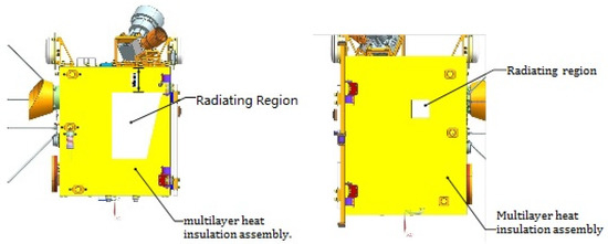 Radiating regions of the Luojia 1-01 satellite. (a) Radiating region of the +Y panel. (b) Radiating region of the −Y panel.