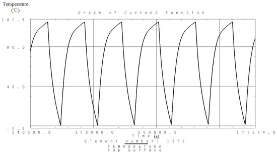 Analysis result of the temperature variation curve of the solar panels under high temperature conditions.