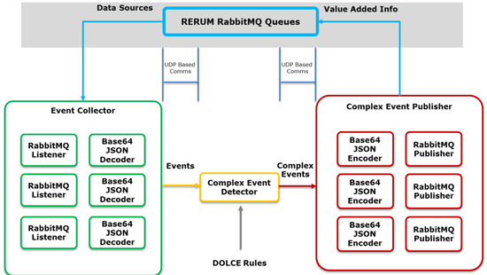 Figure 4 shows the implementation of the Safety CEP engine containing three main components: Event Collector, Complex Event Detector and Complex Event Publisher. First, the Event Collector subscribes to the corresponding RabbitMQ [29] queues to retrieve the sensor data and send them to the Complex Event Detector in the appropriate internal format. The Detector processes the sensor data according to DOLCE rules to detect faults patterns and generates the outputs towards the Complex Event Publisher that generates the added value information.