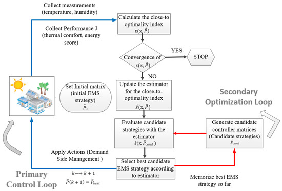 - The selected control matrix candidate is applied, according to the Hamilton-Jacobi-Bellman optimal control equation [31] to the system for the next optimization period, while the process is repeated from the start until performance convergence is reached.