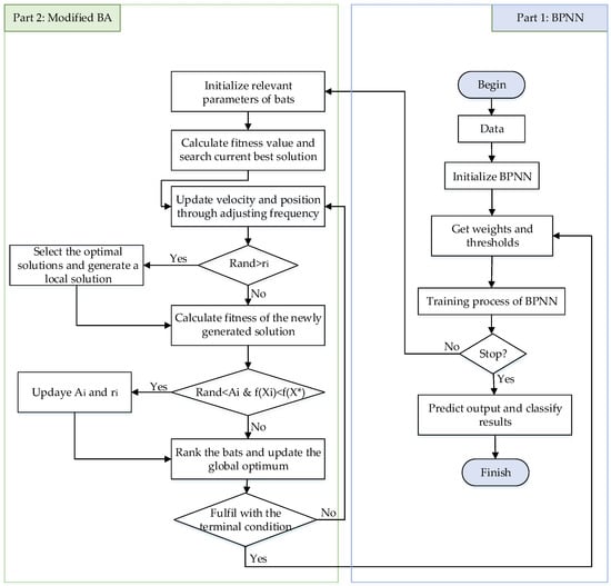 The flowchart of proposed to improve BA-BPNN is drawn in Figure 2 and the main steps are discussed below: