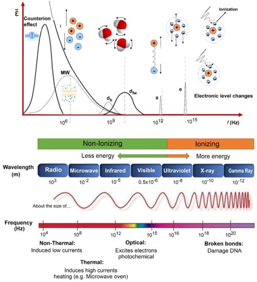 Table 2 summarizes the most common non-destructive techniques used to test the quality of agricultural products. Regular non-destructive assessment techniques include machine vision, near-infrared spectroscopy, hyperspectral imaging, electronic noses, ultrasound measurement and acoustic emission measurements [,,]. Damez and Clerjon [] and Wang and Wang [] have reported that the main components of food are water, carbohydrates, fats, and proteins. Regularly, the processing methods are affected by changes in chemical structure of the agricultural product. The dialectical properties of agricultural products are influenced by cell membranes, the presence of ions, electrical charges on proteins, and pH variations, while cause dielectric spectrum changes as shown in Figure 1.