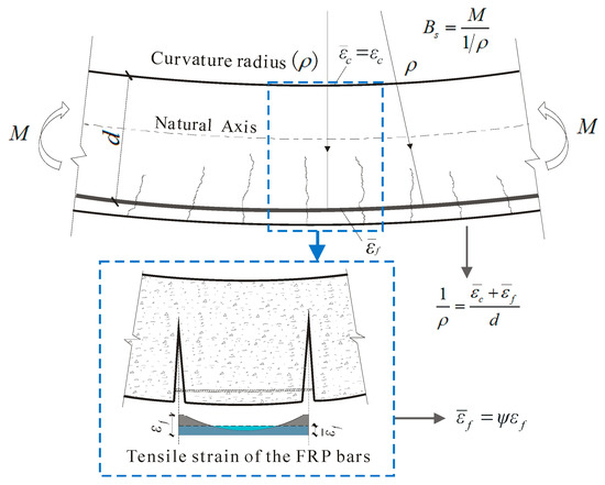 The curvature of FRP-RC members can be calculated based on the εf, considering its nonuniform distribution between cracks, as shown in Figure 3.