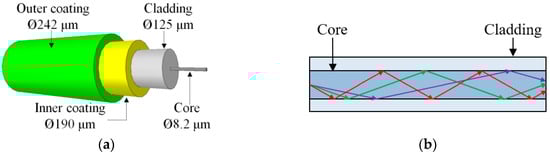 Fiber optic sensors function based on measuring the characteristics of light transmitted along an optical fiber. Changes in the fiber caused by external actions, for example, changes in the temperature or stress state of the fiber, resulting in variations in the transmitted light signal that can be calibrated to the measurand. Different fiber optic sensor types utilize different physical phenomena to modulate the transmitted light; which gives each sensor its characteristic performance. Relevant functional principles for this review are discussed in the following sections. For a general discussion of fiber optic sensors, a wealth of literature is available [14,15,16,17].