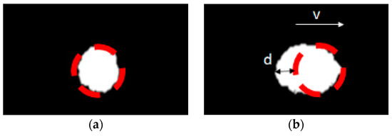 Shape distortion due to motion blur: (a) stopping object; (b) moving object.