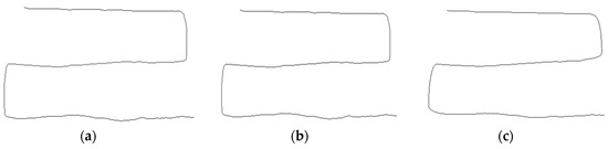 Shape distortion according to Tf: (a) Tf = 30; (b) Tf = 100; (c) Tf = 200.