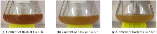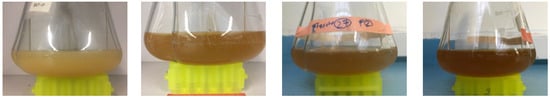 Generally speaking, colorimetry’s goal is to specify the concentration of coloured compounds in the medium. One approach is doing so through OD measurements (Section 2.2.1). Here, we aim at obtaining the same information through colour changes in images of the content of the shake flasks (Section 2.2.2 and Section 2.2.3). Figure 1 depicts the colour change of the medium during cultivation.