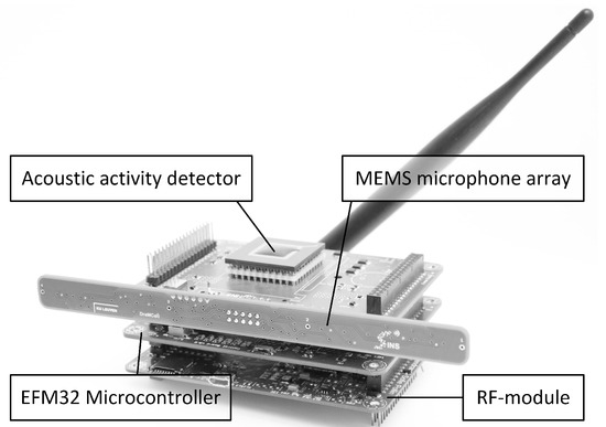 - Thoen, B.; Ottoy, G.; De Strycker, L. An ultra-low-power omnidirectional MEMS microphone array for wireless acoustic sensors. In Proceedings of the 2017 IEEE SENSORS, Glasgow, UK, 29 October–1 November 2017; pp. 1–3. [Google Scholar]