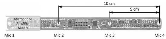 Picture of the linear microphone array with four MEMS microphones spaced 5 cm apart [27].