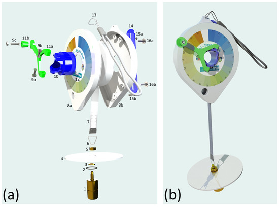 | Handle | 11a,b | Handle used to wind tape in and out of casing. Two separate components to allow for efficient rotation. Fixed together with a stainless steel nut and bolt (see Fixings 1). | Polylactic acid biodegradable thermoplastic (see mini-Secchi casing for details) | 3D printed using the Ultimaker 2 and 2+ (see mini-Secchi casing for details). | STL files provided in Supplementary data 3. |