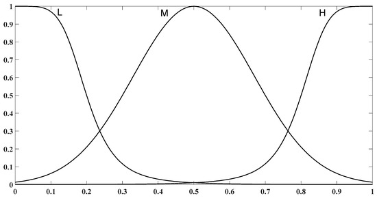 where is the input to the fuzzy system. In this type of membership functions, mean, and standard deviation, are nonlinear parameters that should be adjusted by optimization algorithms. Three Membership Functions (MFs), Low (L), Medium (M) and High (H), have been considered for each input. These membership functions have been shown in Figure 3. Takagi-Sugeno inference type by singleton consequences in fuzzy rules has been used in the fuzzy rule-base part. By using this inference type, deffuzification process has been avoided [33]. This fuzzy rule-base has 81 rules and three singleton consequences have been considered for Importance Degree (ID) in each fuzzy rule. The -th rule of the rule base has been described in Equation (10):