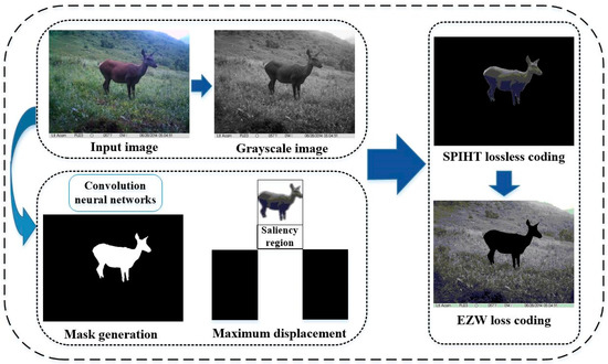 A novel hierarchical coding progressive transmission method is proposed to process the wildlife monitoring images with high resolution and large information data, as shown in Figure 3. The region of interest (ROI) [23,24] that contains the wildlife is the major object of study, while background regions only provide comparatively irrelevant reference information. The steps of the algorithm are as follows: