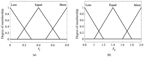 where is calculated through Equation (23), and is the trace of a matrix. Then, the difference coefficient serves as the input of the fuzzy reference system, and the corresponding output can be obtained: