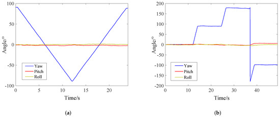 The estimated attitude angles with proposed approach. (a) Trajectory A. (b) Trajectory B.