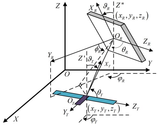 Firstly, we choose and referring to the direct path as the analysis object. In such a case, the radiation direction is determined by the positions of the tag antenna and the reader antenna. Rotating and translating the coordinate system, then , , and can be expressed as: