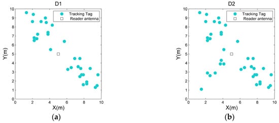 Diagram of two deployments with regard to the tracking tags. (a) D1 and (b) D2.