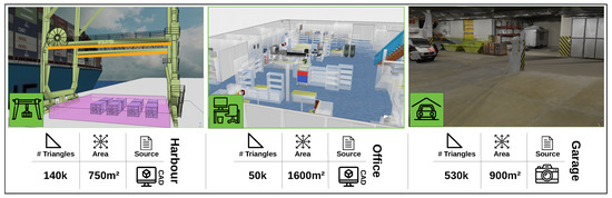 In our proposed workflow, the simulator will also be responsible for the definition and modelling of the specific problem. Firstly, the geometry of the problem should be available in the shape of a triangular mesh. This data format is widely available by the use of CAD software packages in construction and design. When no CAD model is available, one could always resort to 3D reconstruction from image data. In our experiments section we will show both cases to highlight the flexibility of our solution. Next we require geometrical knowledge of each camera that can be positioned. This information consists of a perspective angle of the camera, the resolution, and the maximum/minimum measurement distance.
